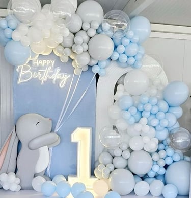 We bring joy to your 1st birthday with colorful balloon designs that light up the celebration.
