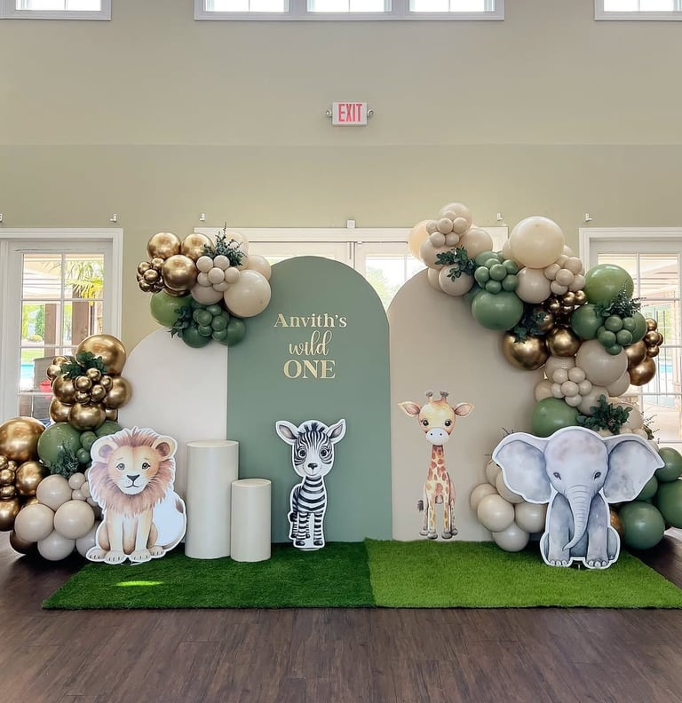 Celebrate your little one’s milestone with joyful balloon decor.