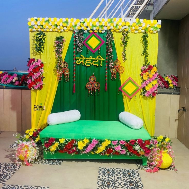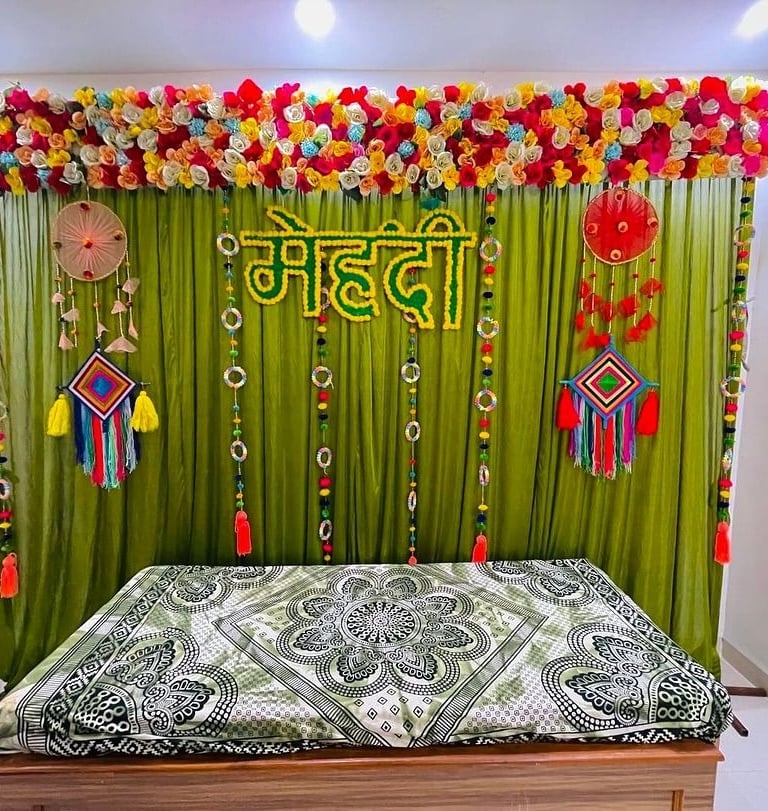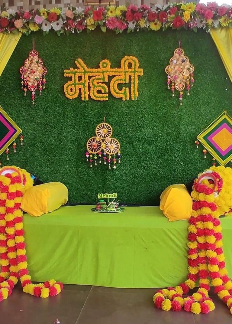 Vibrant floral decor that brings your Mehendi ceremony to life.